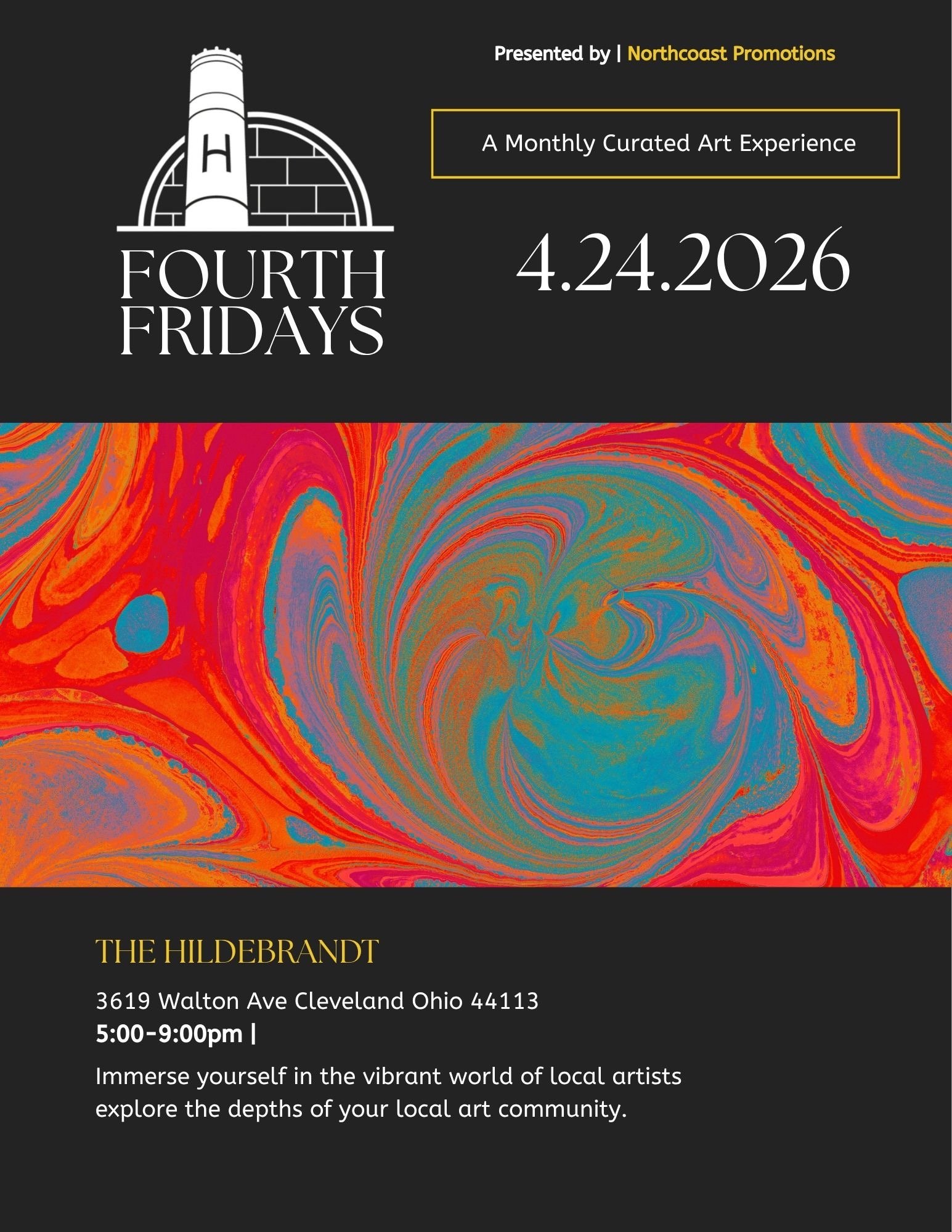 Hey Cleveland! Heres the NEW NEW…Fourth Fridays, at The Hildebrandt!! Our first installment kicks off April 24th, so mark your calendar, round up your friends, and see you there!